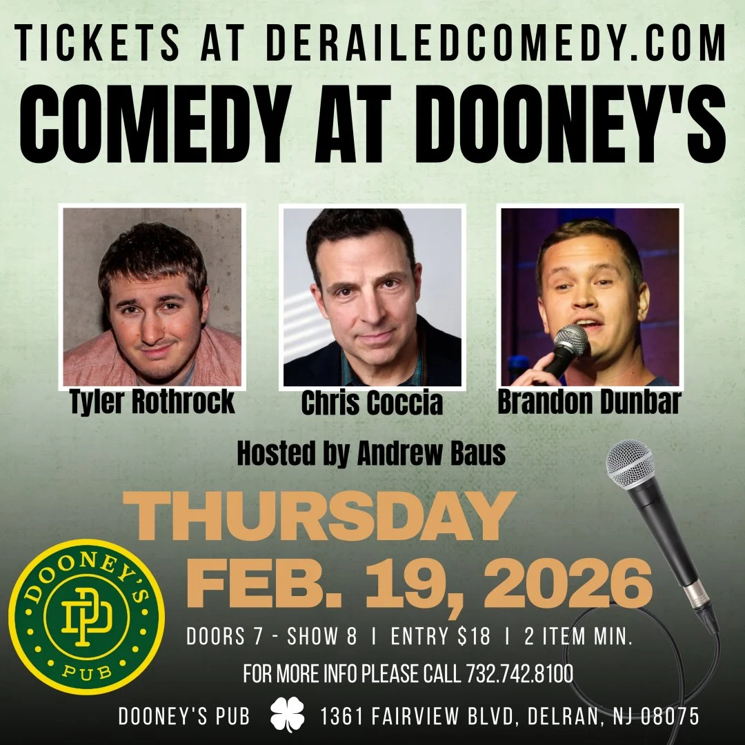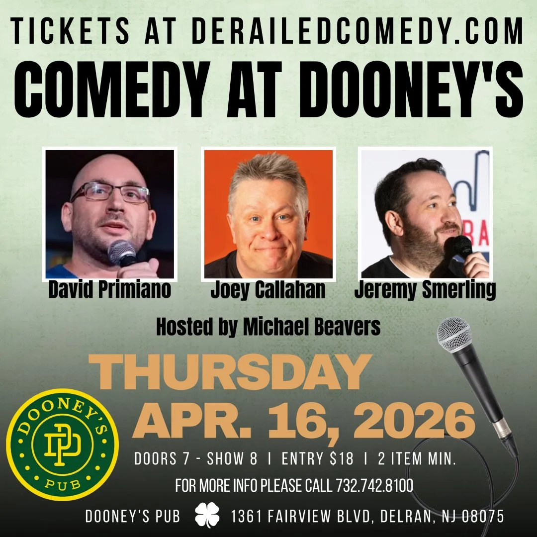 Quick View Thursday, January 8, 2026 @ 8PM (Doors at 7PM) - Bonesaw Brewing Company - Glassboro, NJ - $18 Quick View Friday, January 9, 2026 @ 8PM (Doors at 7PM) - 21 Locks Brewing Company - Morrisville, PA - $18 Quick View Thursday, January 15, 2026 @ 8PM (Doors at 6:30PM) - Blue Monkey Tavern - Merchantville, NJ - $20 Quick View Friday, January 16, 2026 @ 8PM (Doors at 7PM) - Buena Connection Brewing Company - Buena, NJ - $20 Quick View Saturday, January 17, 2026 @ 8PM (Dinner at 7:00PM) - Blue Monkey Catering - Levittown, PA - $49 Quick View Thursday, January 22, 2026 @ 8PM (Doors at 7:00PM) - Magnify Brewing - Medford, NJ - $20 Quick View Wednesday, February 4, 2026 @ 7:30PM (Seating at 5:30PM) - Kaminski's Sports Bar & Restaurant - Cherry Hill, NJ - $15 Quick View Thursday, February 5, 2026 @ 8PM (Doors at 7PM) - Bonesaw Brewing Company - Glassboro, NJ - $18 Quick View Thursday, February 19, 2026 @ 8PM (Seating at 7PM) - Dooney's Pub - Delran, NJ - $18 Quick View Friday, February 20, 2026 @ 8PM (Doors at 7PM) - 21 Locks Brewing Company - Morrisville, PA - $18 Quick View Saturday, February 21, 2026 @ 8PM (Seating at 7PM) - Little Mill Country Club - Marlton, NJ - $20 Quick View Thursday, February 26, 2026 @ 8PM (Doors at 7:00PM) - Magnify Brewing - Medford, NJ - $20 Quick View Friday, February 27, 2026 @ 8PM (Doors at 7PM) - Buena Connection Brewing Company - Buena, NJ - $20 Quick View Thursday, March 5, 2026 @ 8PM (Doors at 7PM) - Bonesaw Brewing Company - Glassboro, NJ - $18 Quick View Saturday, March 14, 2026 @ 8PM (Dinner at 7:00PM) - Blue Monkey Catering - Levittown, PA - $49 Quick View Wednesday, April 8, 2025 @ 7:30PM (Seating at 5:30PM) - Kaminski's Sports Bar & Restaurant - Cherry Hill, NJ - $15 Quick View Thursday, April 9, 2026 @ 8PM (Doors at 7PM) - Bonesaw Brewing Company - Glassboro, NJ - $18 Quick View Thursday, April 16, 2026 @ 8PM (Seating at 7PM) - Dooney's Pub - Delran, NJ - $18 Quick View Friday, April 17, 2026 @ 8PM (Doors at 7PM) - 21 Locks Brewing Company - Morrisville, PA - $18 Quick View Saturday, April 18, 2026 @ 8PM (Seating at 7PM) - Little Mill Country Club - Marlton, NJ - $20 Quick View Friday, April 24, 2026 @ 8PM (Doors at 7PM) - Buena Connection Brewing Company - Buena, NJ - $20 Quick View Thursday, April 30, 2026 @ 8PM (Seating at 7PM) - Dooney's Pub - Voorhees, NJ - $20 Quick View Thursday, May 7, 2026 @ 8PM (Doors at 7PM) - Bonesaw Brewing Company - Glassboro, NJ - $18 Quick View COMING SOON